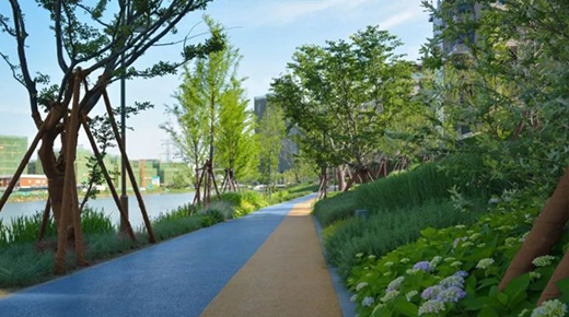 閑坐平臺樹蔭下,醉躺草坪陽光中。從不同角度賞完江景,我們最終來到了濱水步道的結尾處,即將邁入潮公園空間。