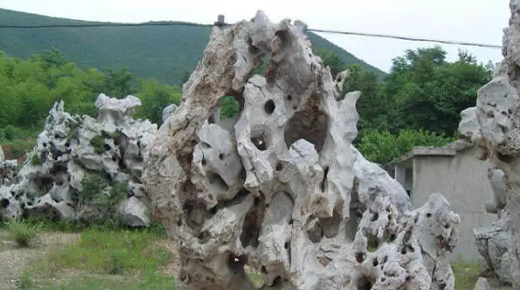 太湖石:是太湖之中的石灰巖巖石,經過長期波濤的沖擊和風化溶蝕而成。意趣天然的