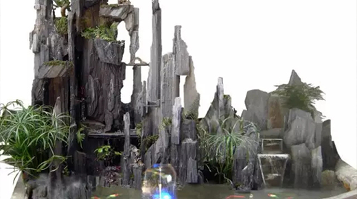 疊后,氣勢宏偉,厚重中又顯出輪廓線的變化。但注意切不可露人工雕鑿痕跡。石體組合成型后,