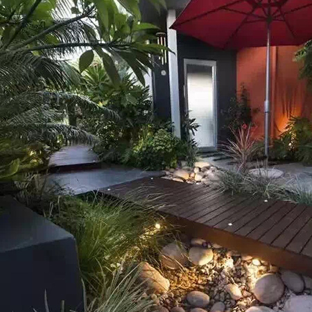 本叫枯山水,有禪意,節水,低維護,方便介入。有時,旱溪也可以做河底,甚至